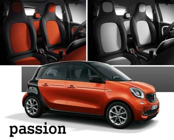 smart forfour sport edition, con assetto sportivo da vero guerriero della strada; smart forfour youngster, con musica, connettività e clima di serie al prezzo più basso che c’è; smart forfour passion, dal design glamour e contemporaneo; smart forfour prime, la più innovativa con le ultime tecnologie Mercedes-Benz; la smart Proxy, dallo stile originale e frizzante.