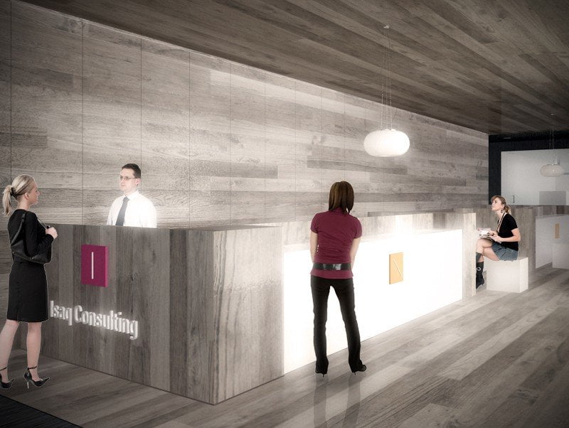 Dal punto di vista funzionale, il layout si sviluppa secondo un impianto a ferro di cavallo dove trovano posto le aree ad ufficio ed una fascia interna, il “cuore del progetto”, formata da un patio coperto e visivo posto in continuità con un’area open space dove trovano posto i front office di Isaq Consulting, Fiscale e Lavoro, lo spazio Tradecom e uno spazio di servizio agli utenti denominato “Nuovi Modi” in cui, grazie all’uso della tecnologia, i fruitori potranno trovare un primo punto di ascolto.