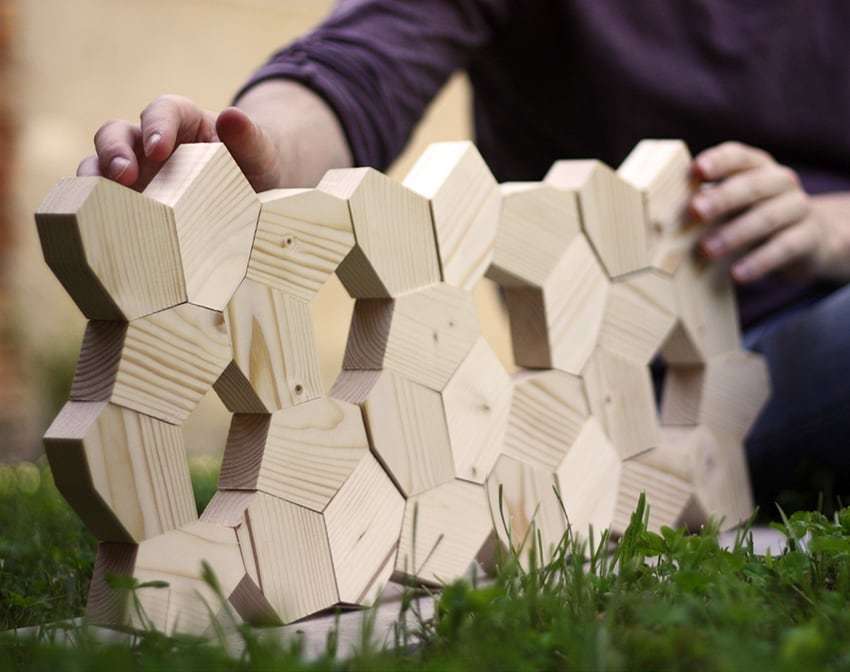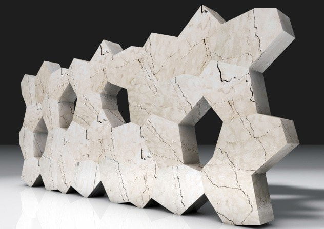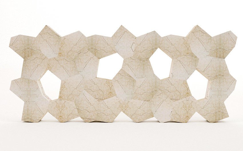 Dieci aziende del Consorzio Marmisti Chiampo (Athena, Bocchese G. Vittorio, Decormarmi, Effe Italia, Industria Marmi Ferrari, La Perla, Marmi Bocchese,Marmi Serafini, Ra.La di Rancan Lavinio, Vicentina Marmi) hanno collaborato con il Dipartimento di Architettura di Ferrara per la realizzazione del prototipo in scala 1:1 dell’opera, progettata dagli studenti Marco Manfra e Marco Salomoni, che interpreta le potenzialità dei diversi materiali lapidei, per la realizzazione di prodotti modulari rispondenti a necessità strutturali o decorative di progetti architettonici di diversa complessità e arricchiti da lavorazioni, modellazioni e trattamenti. Elementi capaci di fornire valore aggiunto all’architettura in cui vengono impiegati.