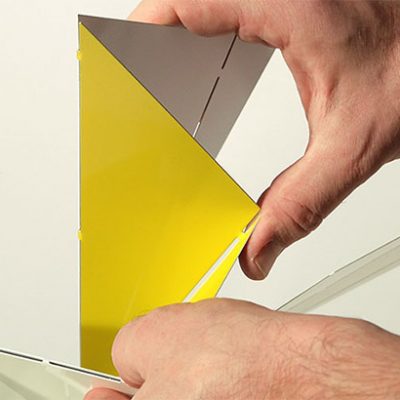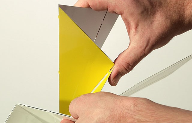 Mirco Kirsch ha realizzato, per Belt+Sund, una lampada ricavata da un unico foglio di metallo che si piega e si monta come un origami. L’inclinazione della struttura permette di regolare la dose di luce diretta della lampadina LED. Disponibile in diverse colorazioni
