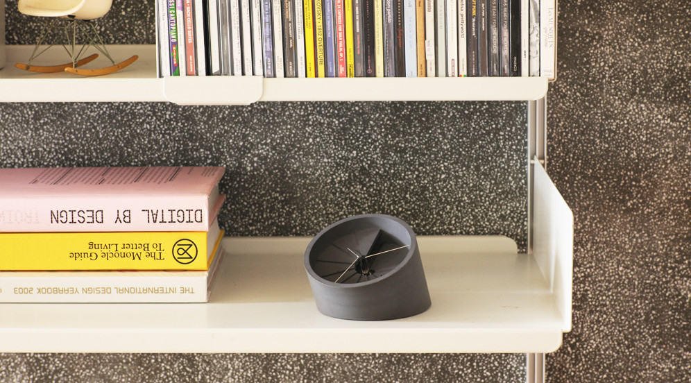 Un orologio da tavolo pensato per conciliare le esigenze funzionali con quelle estetiche. Ideato da 22 Design Studio, l’orologio ha un design creativo, tradotto in forme essenziali ed intuitive: gradini di cemento rappresentano le ore, scandite da sottili lancette in acciaio.