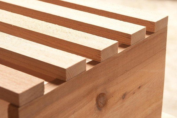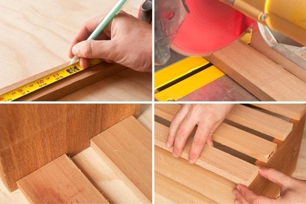 Ogni modulo è realizzato con tavolette di legno tagliate a misura e fissate con delle viti.
