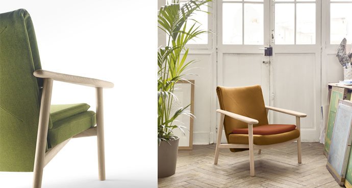 Le poltroncine Paleta sono realizzate in rovere e noce.