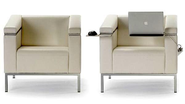 Martin Ballendat ha disegnato P@d, una poltrona comoda e confortevole sia per rilassarsi che per lavorare, in quanto dispone di tutto l’occorrente, come ripiani e attacchi, che possono essere estratti dalle loro sedi quando si deve lavorare al computer.