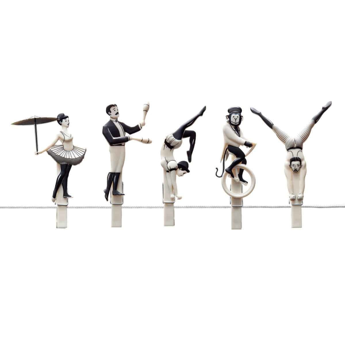 Le Pegzini Family, le simpatiche mollette funambole per stendere il bucato, si possono acquistare qui.