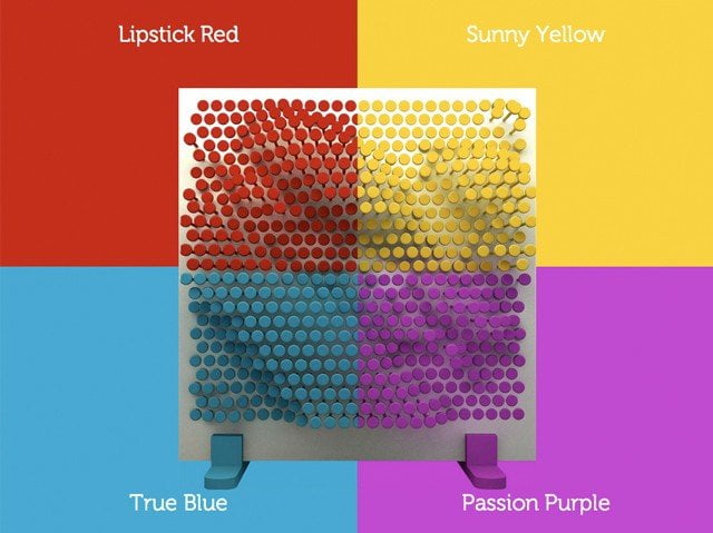 Il pannello accoglie qualsiasi oggetto, adattandosi ad ogni forma e dimensione. Muovendo i pomelli si creano anche disegni sulla superficie, che arredano come quadri.