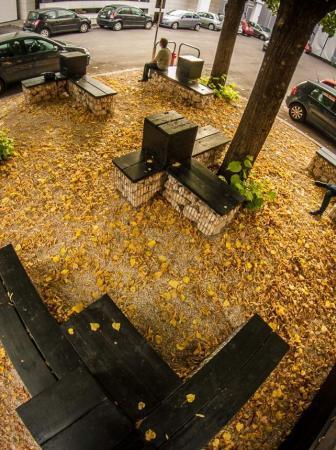 La struttura si compone di tanti bottoni con asta retrattile, da tirar fuori all’occorrenza ed usare come base d’appoggio.