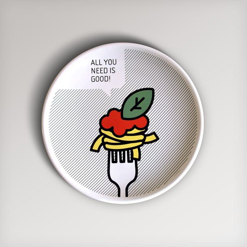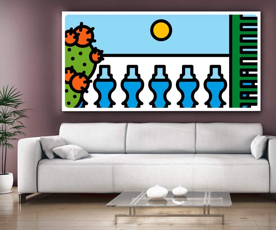 Le grafiche iconiche Pit-Pop possono valorizzare diverse tipologie di oggetti come quadri, tappeti, cuscini, piatti e wallpapers.
