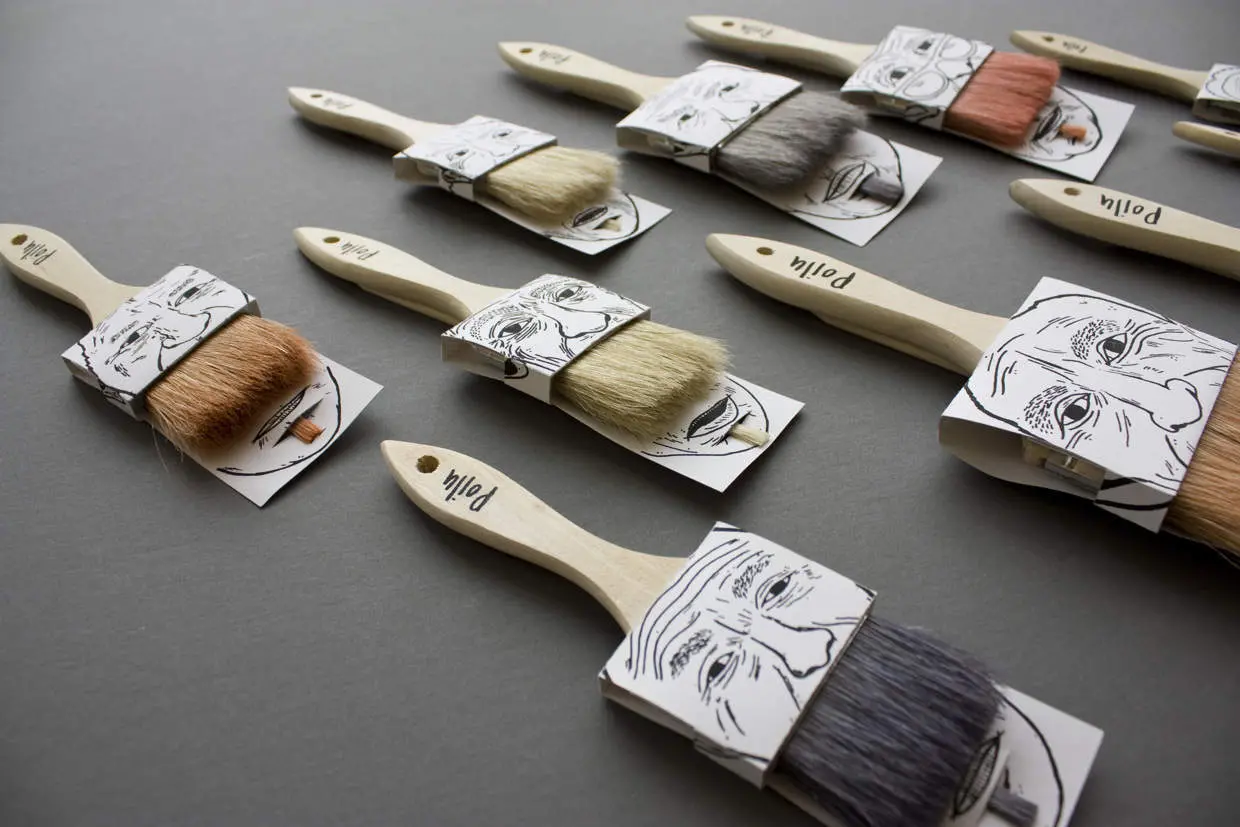 Poilu è il progetto realizzato dal designer canadese Simon Laliberté, vincitore del concorso Pentaward 2013, una serie di simpatici packaging per confezionare dei classici pennelli da pittura. Ogni confezione contiene 2 pennelli di 2 dimensioni differenti che vengono riuniti nel packaging formando i baffi ed il pizzetto del volto stampato su di esso.
