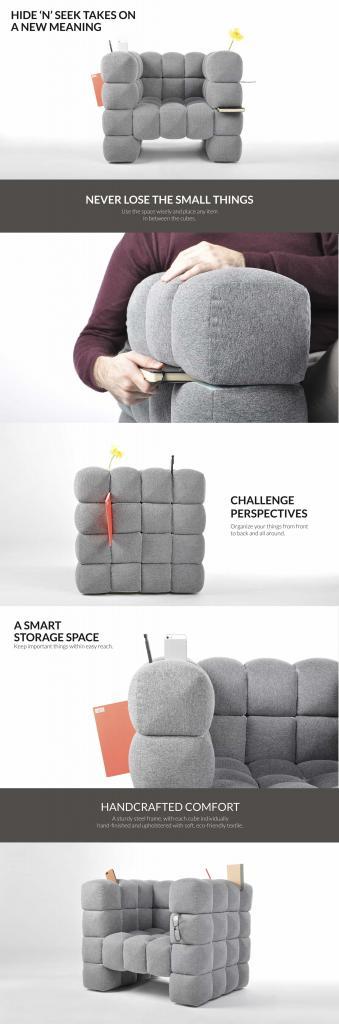 La poltrona Lost In Sofa, progettata da Daisuke Motogi, è nata per nascondere piccole sorprese e rendere la vita di tutti i giorni più piacevole. Spesso perdiamo oggetti inaspettati nelle pieghe del divano. Nascondere il tuo oggetto preferito, mantenere un libro a portata di mano, inserire un regalo o persino un fiore…sono solo alcune delle molteplici possibilità di utilizzo della poltrona Lost In Sofa.