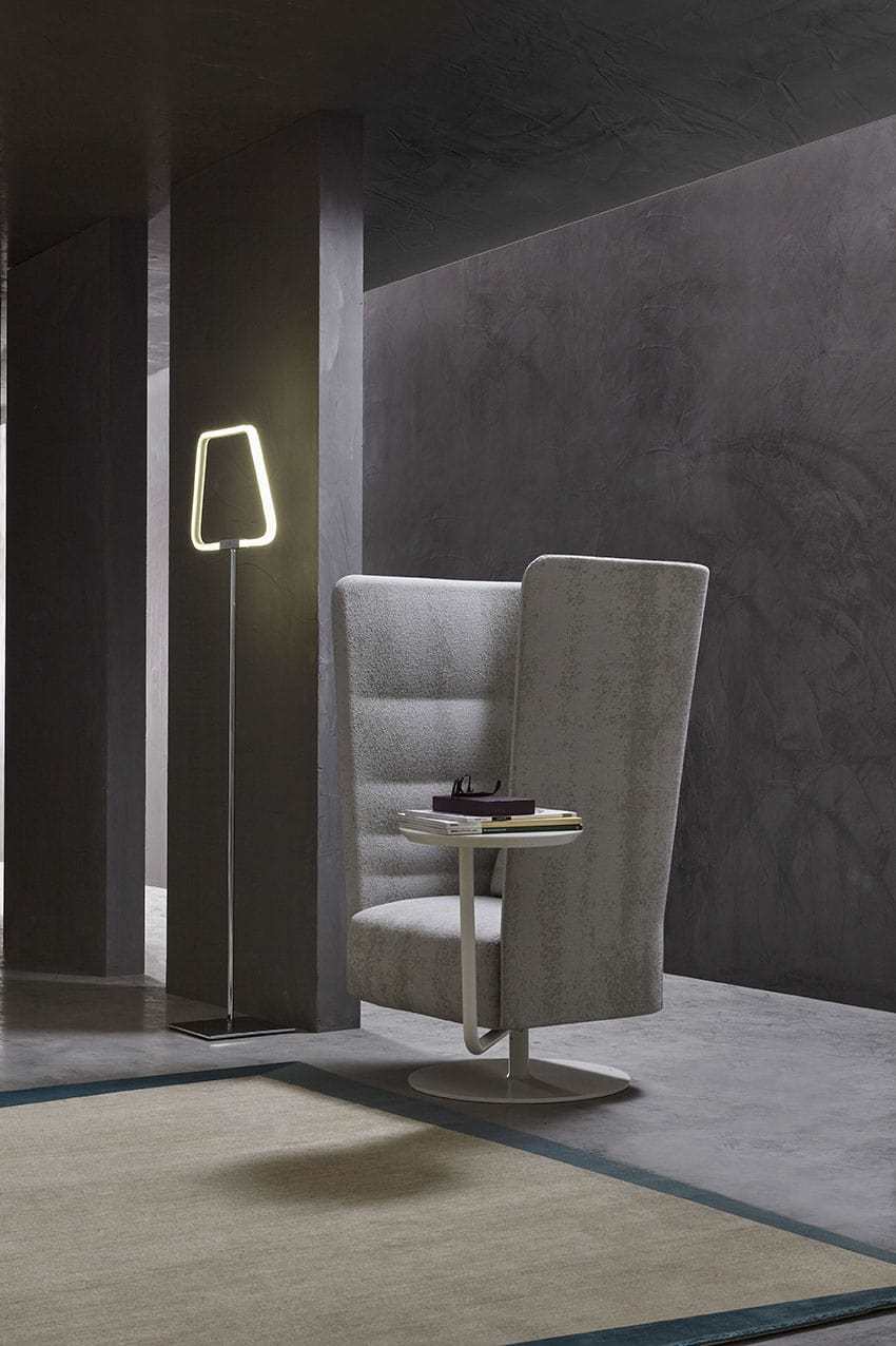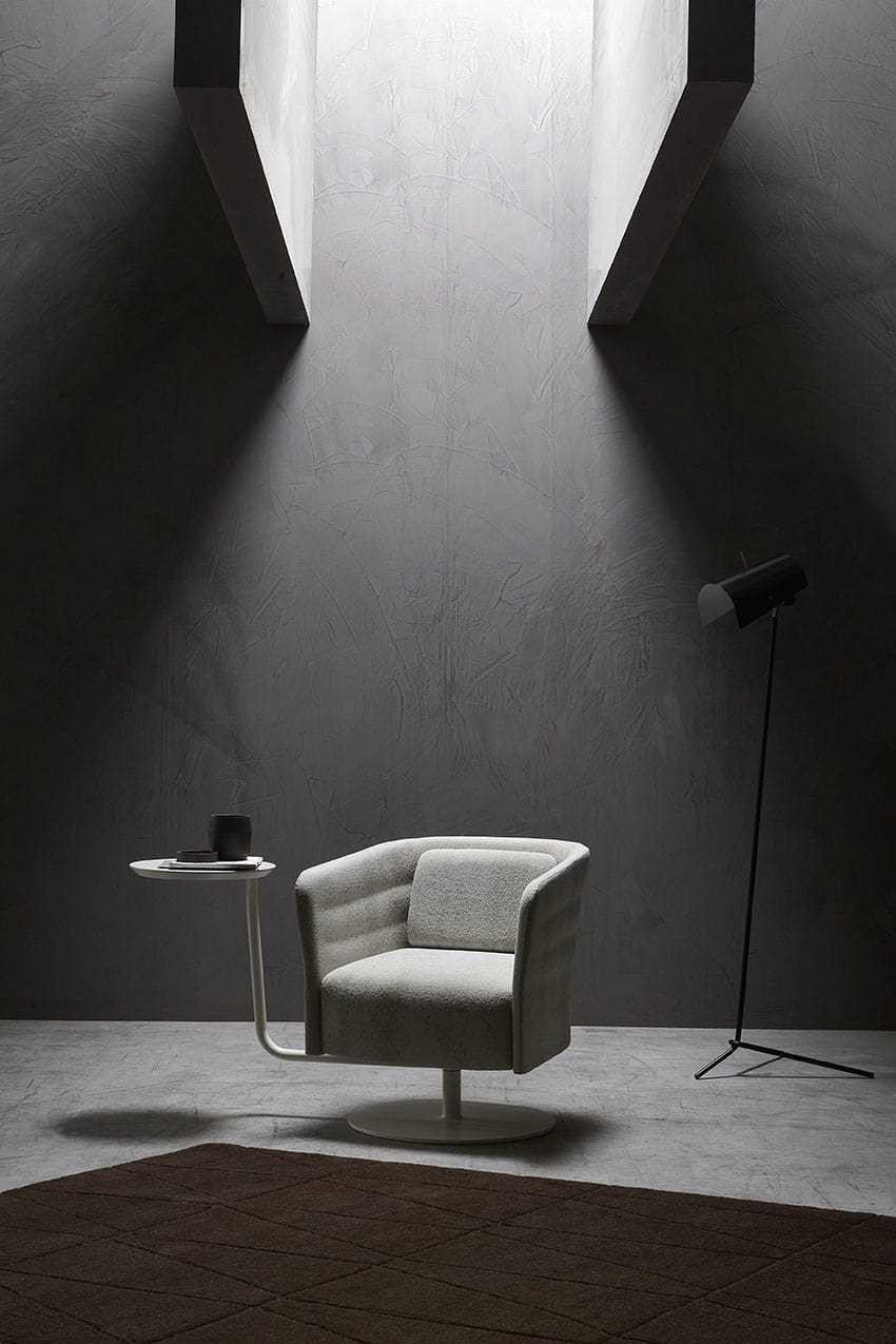 Per offrire maggiore funzionalità tutte le poltrone e i divani possono essere dotati di tavolino che può essere facilmente avvicinato o escluso dalla seduta grazie a supporto e piano girevoli.