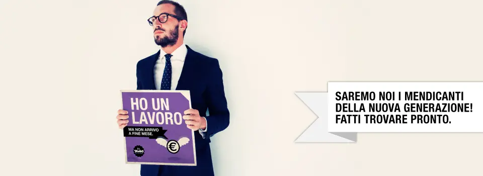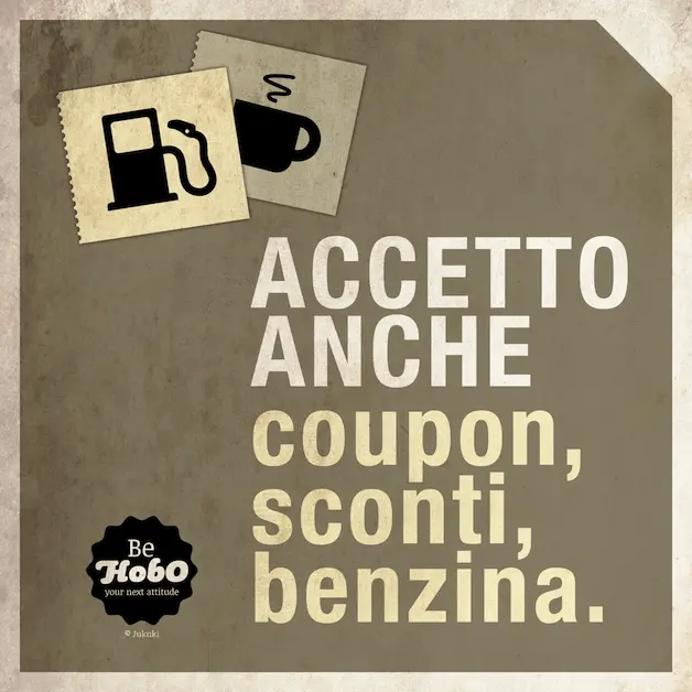 Il progetto Be Hobo dell’artista Jukuki, che attraverso una forte provocazione, tenta di rendere la crisi economica un vero e proprio marchio. Una doppia sfida quindi, da una parte la critica al marketing che trasforma tutto in prodotto, dall’altra un invito ad essere eleganti anche nel vivere come un senzatetto. Be Hobo propone una serie di cartelli prodotti su supporti rigidi, colorati, resistenti e leggeri, che rappresentano un’ottima strategia per i giovani che si preparano ad un futuro on the road.