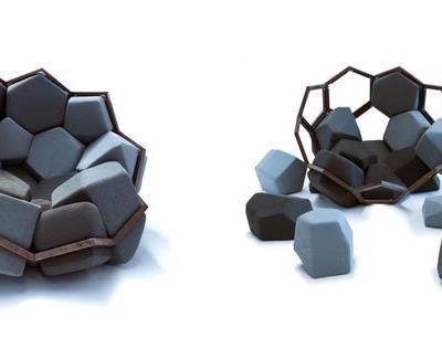 Quartz è una poltrona progettata da CTRL ZAK e Davide Barzaghi hanno realizzato Quartz Armchair, una poltrona ispirata alla serie matematica del Quartz, con la struttura in legno di faggio e cuscini a forma di esagoni e pentagoni. Acquistabile qui.