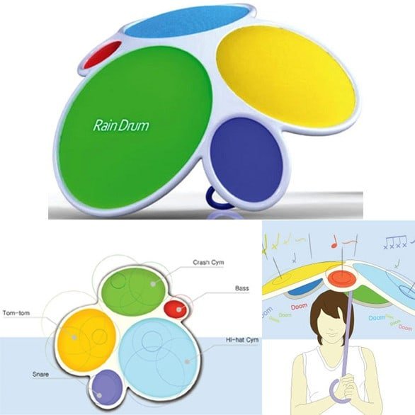 Il #designer sud-coreano Dong Min Park, ha realizzato Rain Drum, un ombrello sul quale ci sono cinque pad rivestiti di tela cerata che, se colpiti dalla pioggia, riproducono i suoni di una batteria: tom-tom, rullante, cassa, charleston, piatto e una nota di basso.