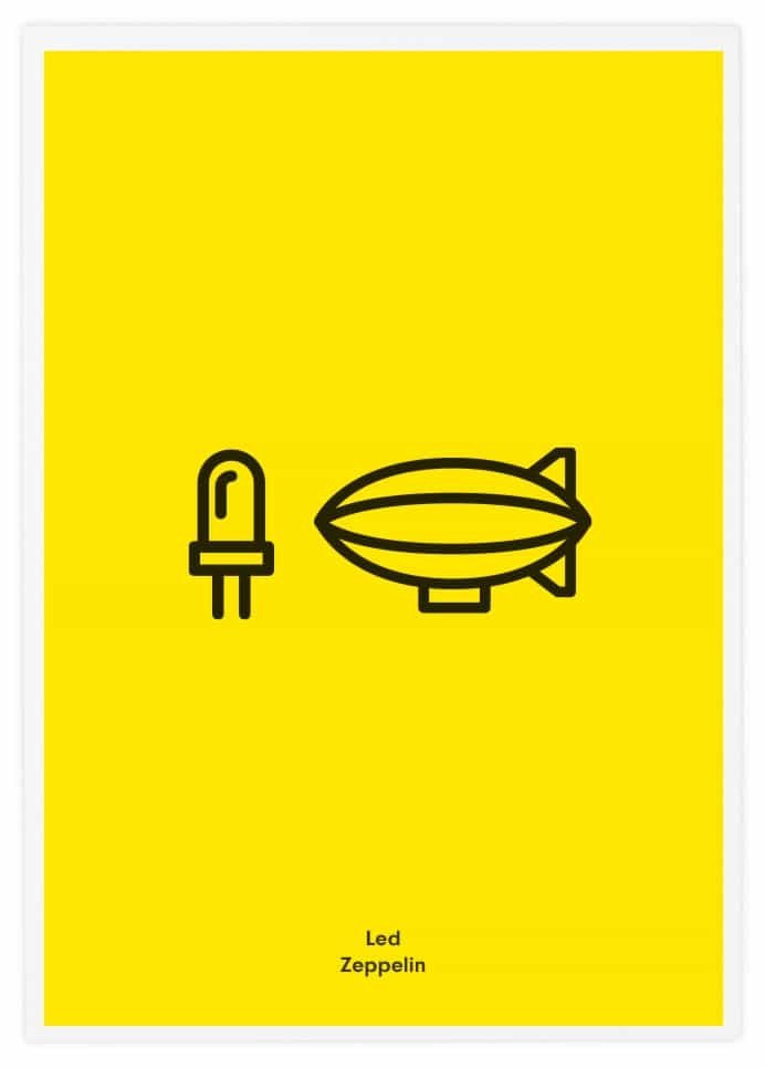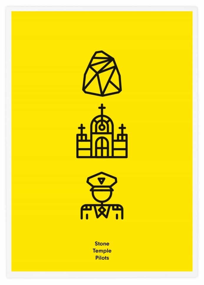Lo studio spagnolo Tata&Friends ha realizzato Rock Band Icons, una collezione di poster nati dalla trasformazione dei nomi di alcune delle più famose rock band in piccoli rebus grafici. Radiohead, Rolling Stones, Pearl Jam, Led Zeppelin e Smashing Pumpkins sono solo alcuni dei nomi “nascosti” dietro queste illustrazioni, una serie di 24 poster tutti con un sfondo di colore giallo con dei pittogrammi di colore nero, date un’occhiata qui sotto alla raccolta dei manifesti e provate ad indovinare il nome della band (senza leggere la didascalia) in base ai pittogrammi.