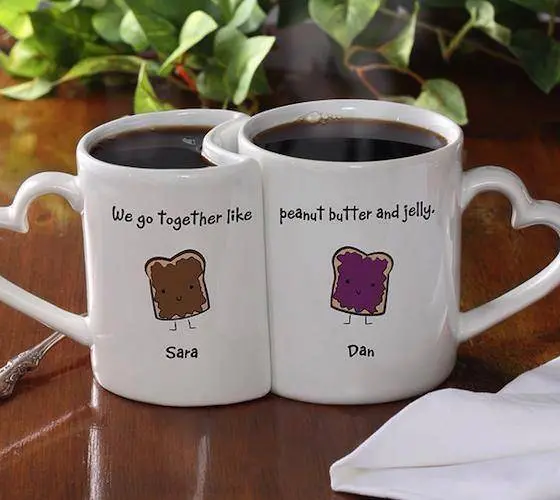 Romantic Personalized Coffee Mug Set, il romantico set di tazze personalizzate che si incastrano perfettamente tra loro, è acquistabile qui. Disponibile in 8 differenti design e personalizzabile anche con il nome.