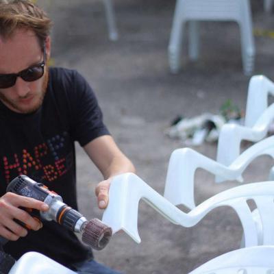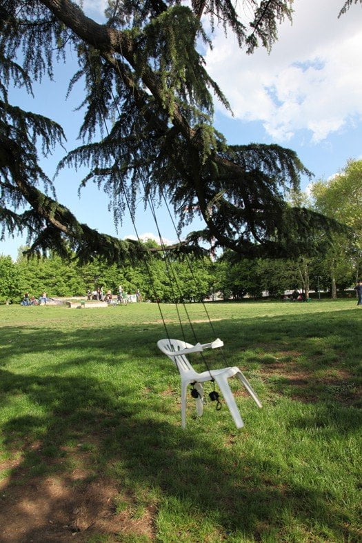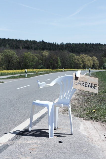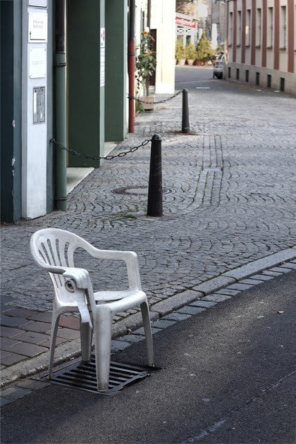 Bert Loeschner ha realizzato Schaukelstuhl, una collezione di comuni sedie da giardino trasformate in modo da avere caratteristiche umane, con braccia e gambe.