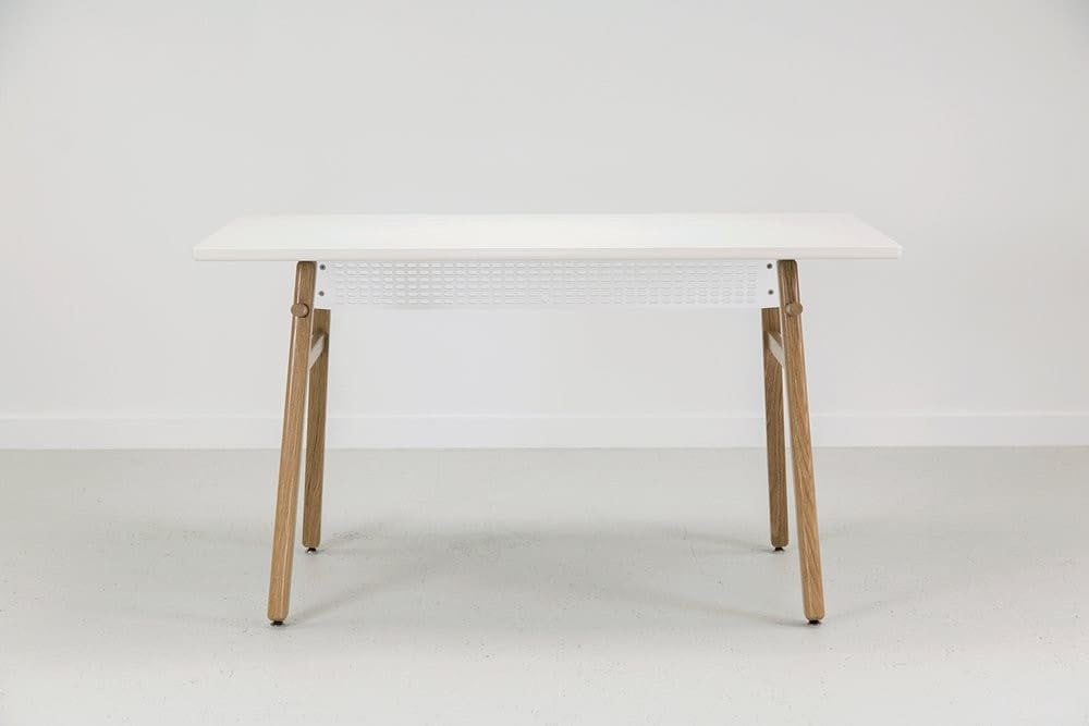 La griglia in metallo posta sotto il piano della scrivania facilita il posizionamento dei vari cavi di alimentazione dei dispositivi, non creando il classico groviglio di fili sotto la scrivania. Desk 02 è progettata per colmare il divario tra bellezza e funzionalità, rendendola ideale sia per studi domestici che uffici commerciali.