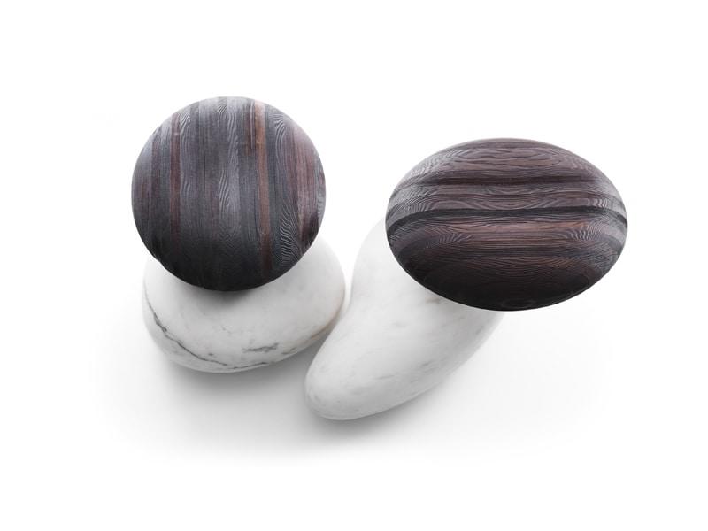 A comporre la singola seduta, la sovrapposizione di una base in marmo ed una di legno lamellare. L’accostamento dei materiali esalta un singolare contrasto fra la concentrazione materica del marmo e la leggerezza formale del legno. Il risultato è un design fluido ed aggraziato.