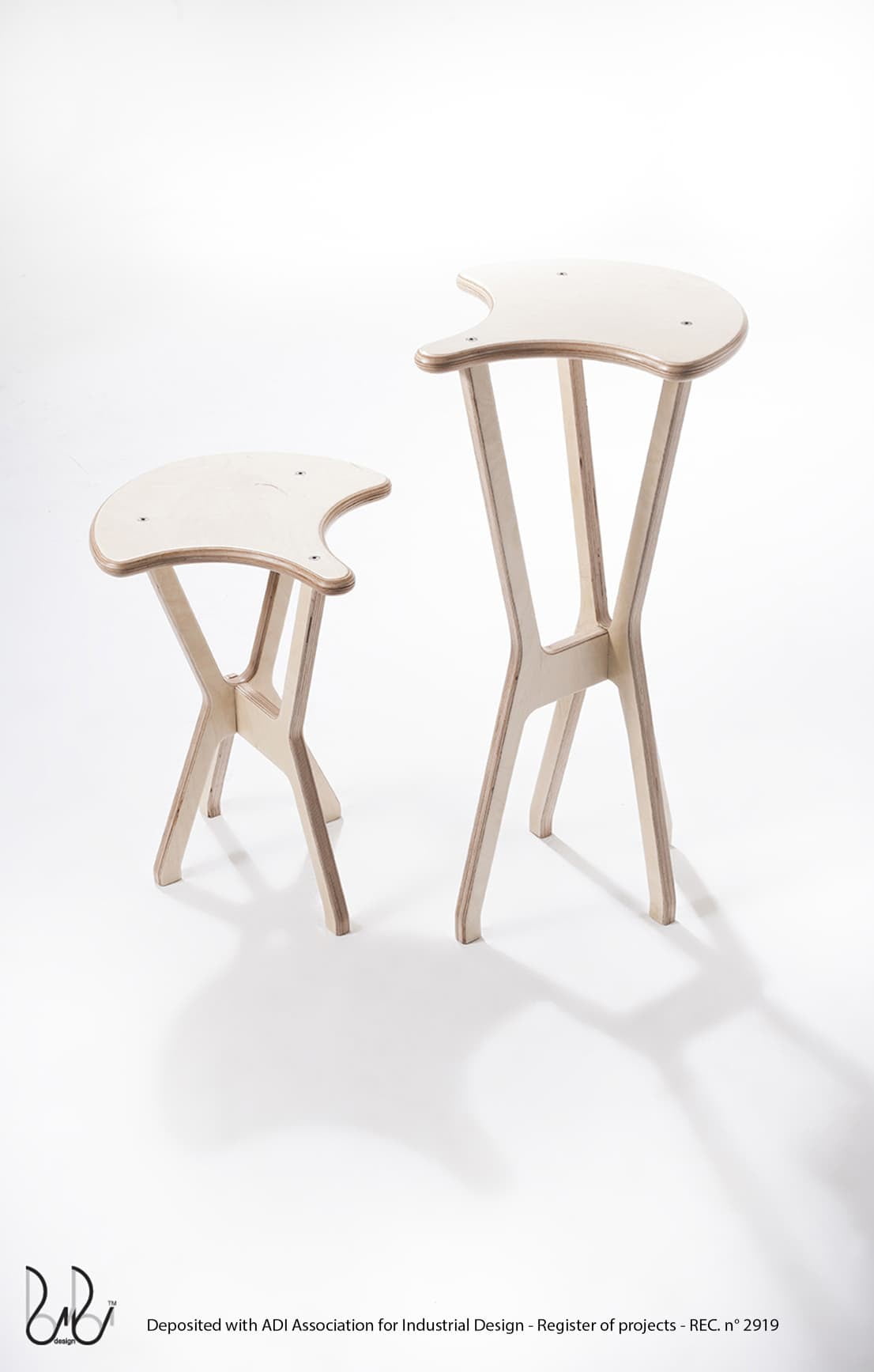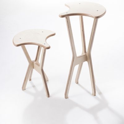 Bibi è un duo creativo nato a Torino nel 2014, ed oggi ci presenta la loro ultima creazione: “Sella / Sellino”. L’essenzialità della struttura, il design accattivante, la funzionalità, costituiscono le caratteristiche peculiari dello sgabello. La forma della seduta richiama la sella della bicicletta da cui discende il nome. Le dimensioni ridotte, il numero limitato dei componenti, la semplicità di montaggio, conferiscono caratteristiche ottimali per agevolarne l’utilizzo. La struttura realizzata in multistrato di betulla dello spessore di 2,2 cm, con elementi ad incastro, consente di ottenere l’ottimale resistenza e leggerezza dell’oggetto. Disponibile nelle finiture Naturale, verde chiaro, lilla, con l’utilizzo di impregnanti all’acqua.