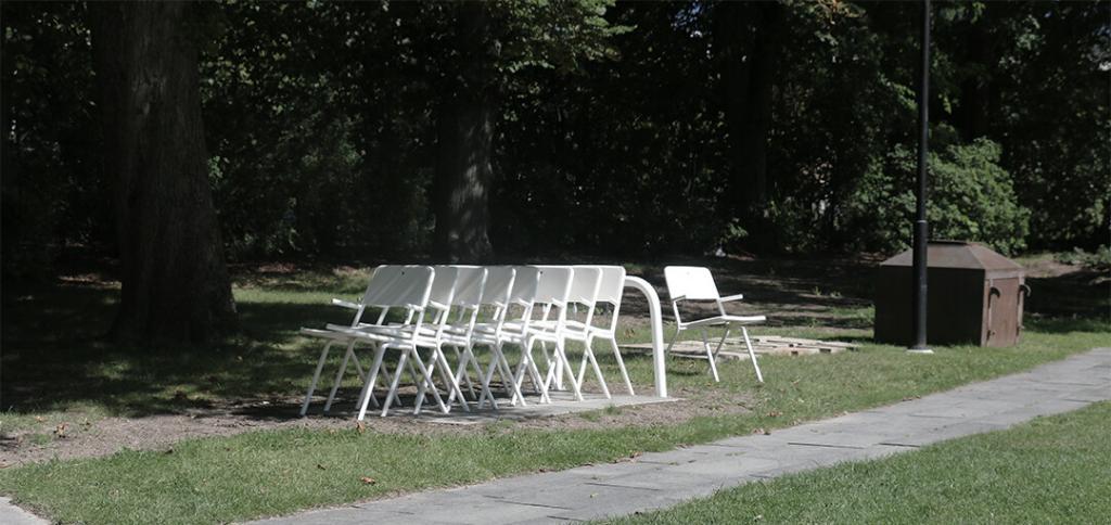 Il designer Thomas Bernstrand ha creato un set di sedie da esterno chiamato Share, appositamente sviluppato per parchi cittadini e luoghi pubblici all’aperto affinché chi ne usufruisce possa mettere in ordine dopo l’uso le sedie del set. Come fossero carrelli della spesa, queste sedie possono essere collegate le une alle altre grazie a un sistema apposito, che prevede l’inserimento di una moneta per liberare una sedia. Dopo averne usufruito, proprio come quando facciamo la spesa, la moneta viene rilasciata quando il cliente restituisce la sedia.