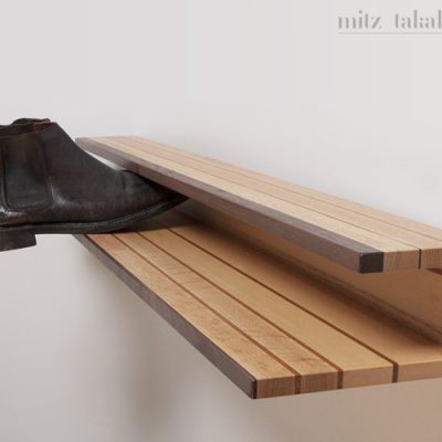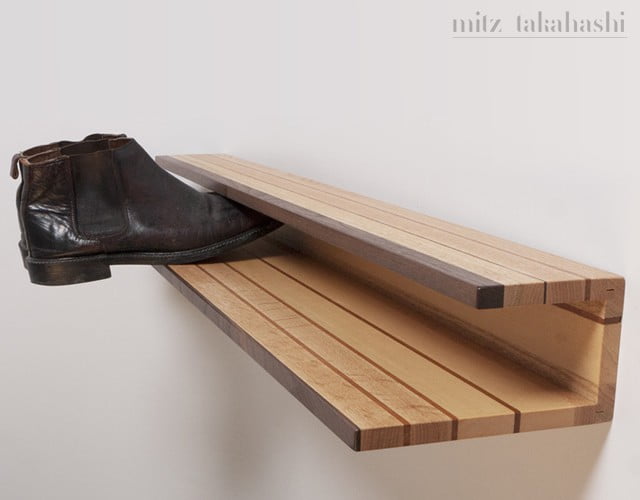 Shoe rack by Mitz Takahashi 7 Gen 2014 Antonio Italia Total0Il #designer canadese Mitz Takahashi ha realizzato Shoe rack, una scarpiera in legno, minimalista, come una mensola da parete. Acquistabile qui.Via themag.it