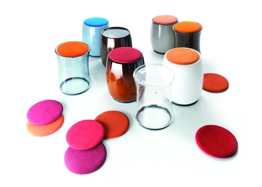 Al vetro soffiato, che contraddistingue il sistema Bolle si aggiunge, inoltre, la versione “morbida”, dedicata al calore dell’accoglienza e al comfort: Bolle Soft è la serie di pouf solidi e compatti, concavi o convessi, composti da una struttura interna in legno avvolta da una soffice imbottitura in poliuretano espanso ricoperta da tessuto Kvadrat.