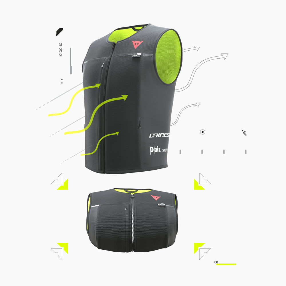 Tutto sta nell’algoritmo di innesco: con una frequenza di 1.000 volte al secondo, l’unità centrale elettronica analizza i dati trasmessi da 7 sensori e rileva situazioni pericolose, attivando il sistema solo quando necessario. Attraverso due decenni di sviluppo e una vasta raccolta dati, Dainese ha perfezionato il suo sofisticato algoritmo D-air per prevedere gli incidenti, tra cui le collisioni di veicoli e motociclisti.
