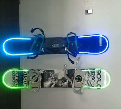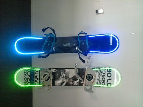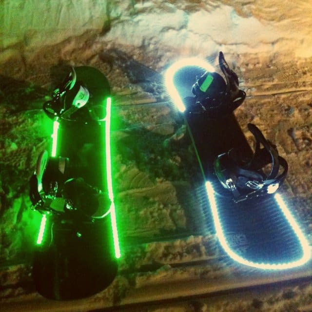 Snowboard Led Light Kit 25 Gen 2013 Antonio Italia Total0Snowboard Led Light Kit sono dei LED impermeabili, a prova d’urto, resistenti e a basso consumo energetico da applicare lungo la tavola da snow per sciare anche in notturna. Disponibili nei colori blu, rosso, verde e rosa, si possono acquistare qui.