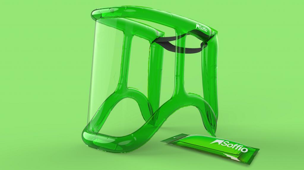 Soffio è costituito da una cornice colorata e gonfiabile realizzata in PVC, alla quale è agganciata una visiera in e una fascia per fissare il tutto alla testa. La funzionalità indiscussa di questa maschera colorata consiste nella possibilità di poter ascoltare gli altri, guardarli, oltre che mangiare e bere in tutta sicurezza.