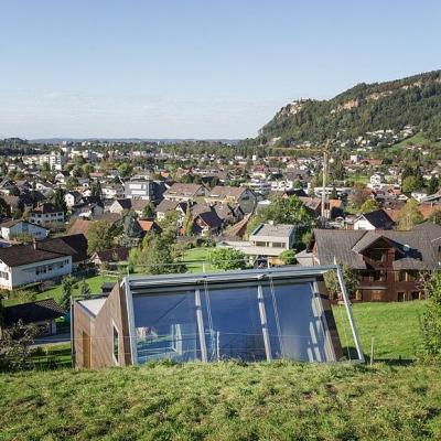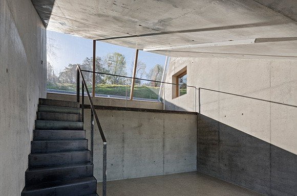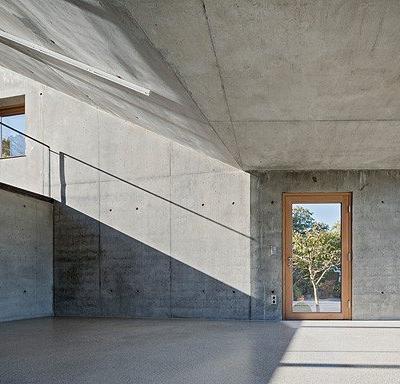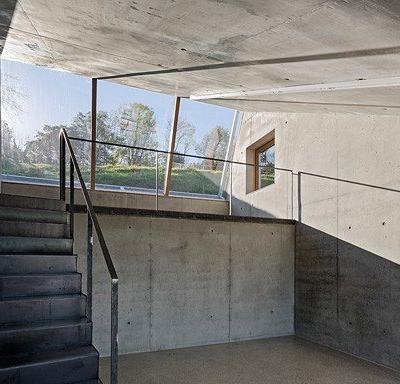 Progettato dall’architetto Christian Tonko, l’edificio opera nello spazio circostante come un dispositivo visivo. A sud-est una grande quantità di luce naturale filtra attraverso il vetro obliquo. Le finestre verso l’esterno sono distribuite per evitare i raggi diretti del sole, se necessario, e per consentire la modulazione delle condizioni di luce, trovando in ogni circostanza la soluzione ottimale.