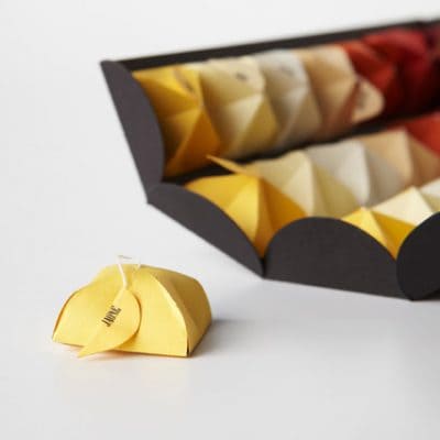 T by Milagros Maria Rodriguez Bouroncle 1 Giu 2014 Davide Italia Total0Un’unica confezione che racchiude una serie di bustine per il the di diversi colori, che oltre a creare un piacevole effetto, distingue i diversi aromi. Inoltre ogni singola bustina ci stupisce con l’apertura a “fiore”.