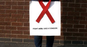 Jim Cork ha realizzato Fight AIDS Tote Bag, una borsa per la spesa con il claim “Combatti l’AIDS. Usa il condom”…