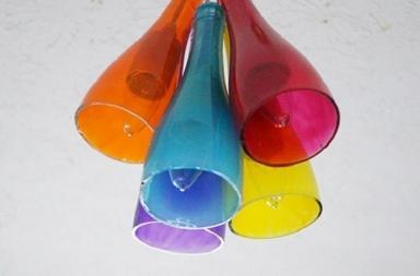 Per illuminare la stanza con originalità, un lampadario fai da te realizzato con bottiglie di vetro! Ne occorrono precisamente cinque, identiche per fo…