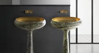 #Gong, un ampio #lavabo #ovale ottenuto lavorando e scavando un blocco di #marmo unico dapprima con #tecnologia specialistica e poi…