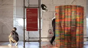 Un'installazione #policromatica costruita utilizzando circa 2.000 #grucce #IKEA 'Bagis' per bambini!