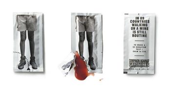 Publicis Mojo ha ideato Landmine Ketchup, un packaging per il Ketchup con lo scopo di sensibilizzare alla lotta contro le mine anti-uomo.