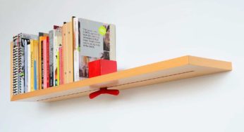 Daniel Eatock ha realizzato una mensola che sembra piegarsi con il peso dei libri, in modo da allineare i volumi…