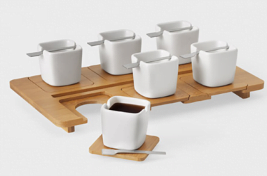 Sullo store del MoMA è in vendita Espresso Set, un servizio da caffè a forma di puzzle realizzato in bamboo dall'architetto e interior #designer Fellin…