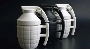 Grenade Mug è una tazza in ceramica a forma di granata: innescate il coperchio per bere! Disponibile bianca o nera…