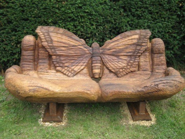 L'artista Arthur Mowbray ha scolpito Butterfly Bench, una fantastica panchina in legno a forma di mani con farfalla ricavata dal legno di un…