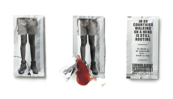 Publicis Mojo ha ideato Landmine Ketchup, un packaging per il Ketchup con lo scopo di sensibilizzare alla lotta contro le mine anti-uomo.