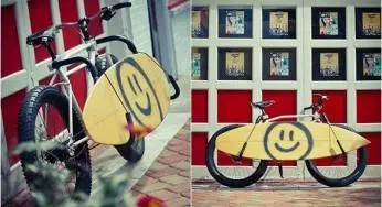 Carver Racks ha realizzato Surfboard Bike Rack, un accessorio che permettere di trasportare la tavola da surf con la bici. Via blessthisstuff.com