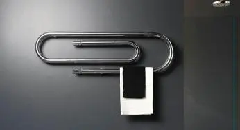 Scirocco ha realizzato Graffe, un termosifone a parete, in acciaio, a forma di enorme clip che funziona anche come porta…