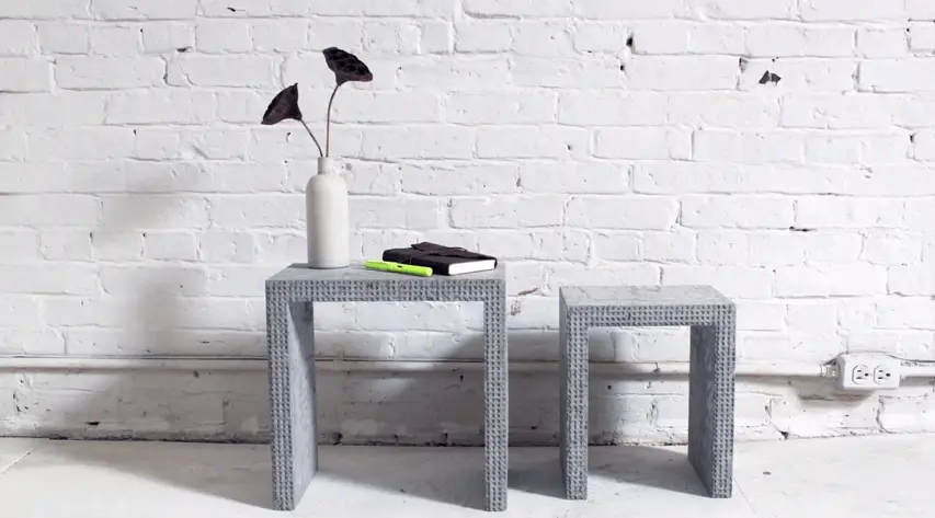 La meticolosa rimozione dei tasselli è l’ultimo step. Il risultato? Due tavolini con mattoncini Lego dalla linea pulita ed essenziale, perfetti per arredare una casa in stile moderno.