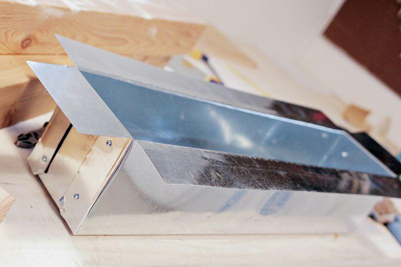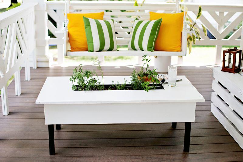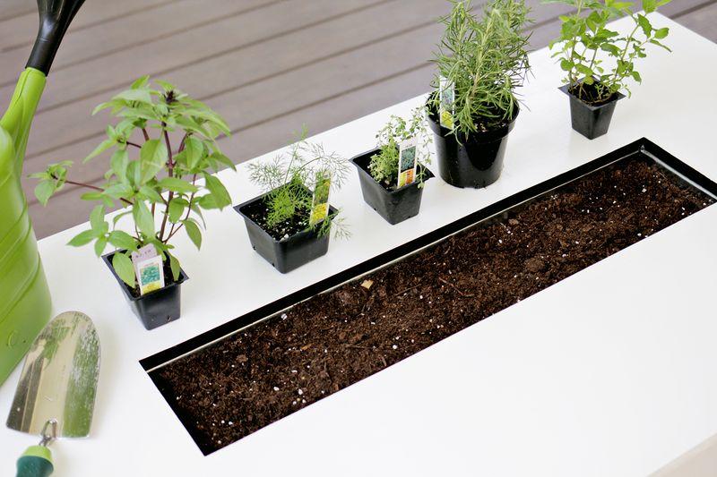Tavola di compensato, lamiera di alluminio, viti, terriccio e piante: ecco cosa vi occorre per realizzare questo favoloso tavolo con fioriera integrata.