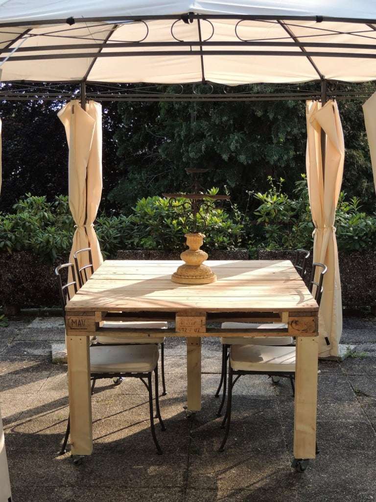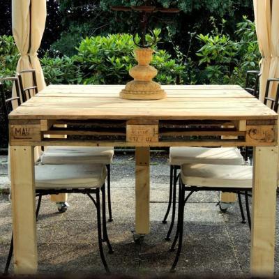 Così ha fatto Le Joli Art, che ha riutilizzato un vecchio pallet per costruire un tavolo da esterno, arredando il giardino con un mobile artigianale dallo stile naturale, che si armonizza perfettamente con il verde circostante.