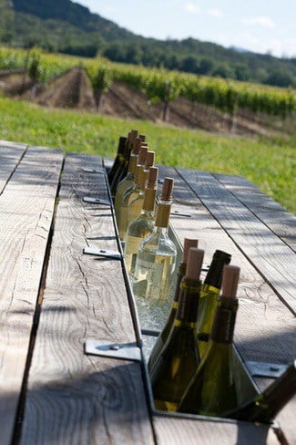 Tavolo da esterno fai da te con frigorifero integrato è un’idea geniale per disporre di bevande sempre fresche durante feste e cene a casa. Questo tipo di tavolo deve essere realizzato in legno perché dovrà contenere due vasche per il ghiaccio, nelle quali verranno posizionate le bottiglie. Tali vasche possono essere in diversi materiali, dal metallo alla semplice plastica, e fissate alla struttura del tavolo con delle viti. La loro posizione ottimale all’interno del tavolo è quella centrale, con il lato più lungo della vasca perpendicolare a quello del tavolo.