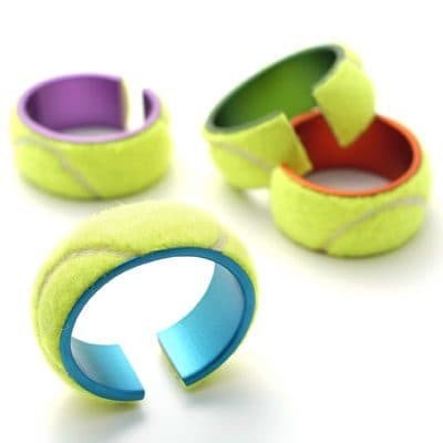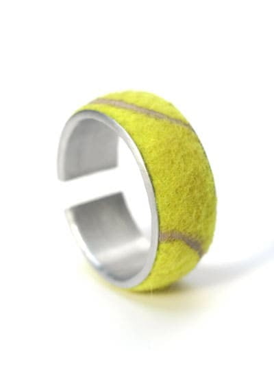 Tennis Jewelry by Elke Munkert 11 Nov 2013 Antonio Italia Total0L’artista tedesca Elke Munkert ha realizzato dei gioielli, bracciali e anelli in alluminio in differenti colori, riutilizzando delle palline da tennis.