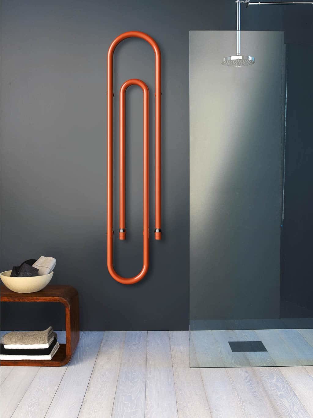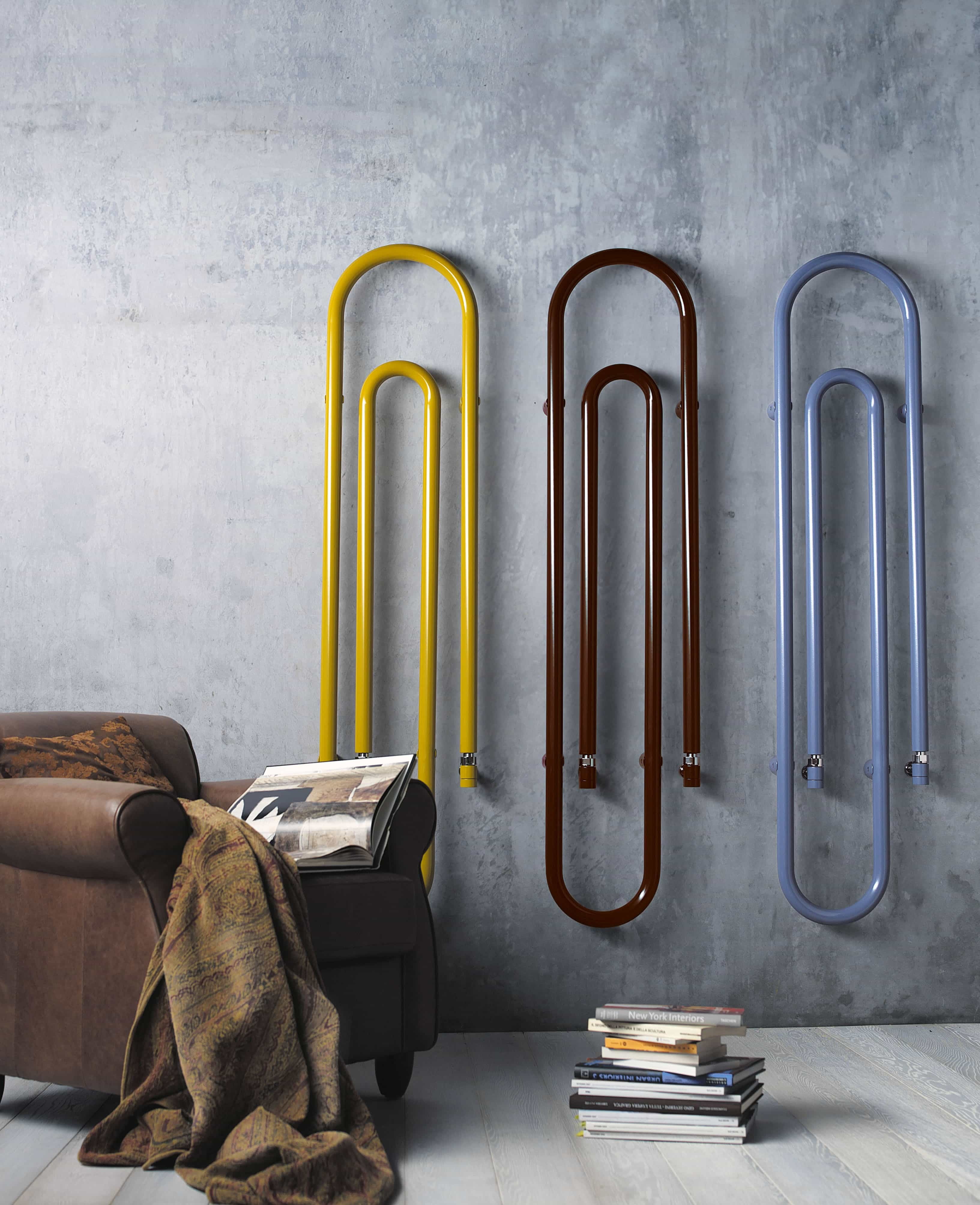 Scirocco ha realizzato Graffe, un termosifone a parete, in acciaio, a forma di enorme clip che funziona anche come porta asciugami. L’ispirazione progettuale sono gli anni del Pop. Il tema è la dilatazione della forma degli oggetti di uso quotidiano e il loro cambio di funzione in un gioco di immediata riconoscibilità e piacevolezza. Maggiori informazioni qui.